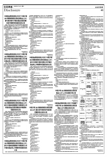 中欧基金管理有限公司关于中欧沪深300指数增强型证券投资基金(LOF)参与建设银行开展的基金定期定额