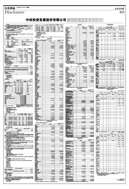 中纺投资发展股份有限公司2010年半年度报告摘要