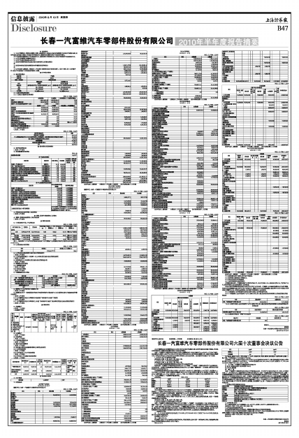 长春一汽富维汽车零部件股份有限公司2010年半年度报告摘要