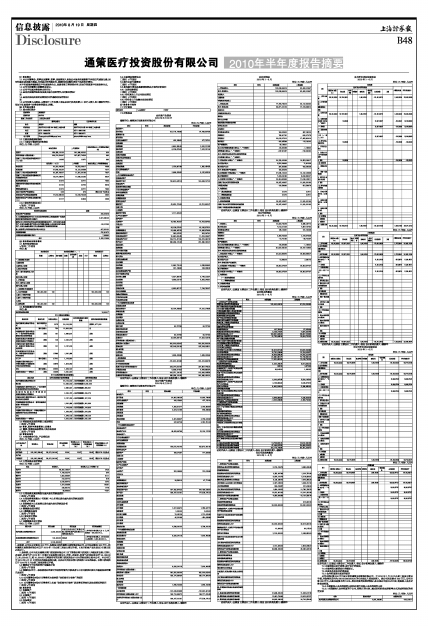 通策医疗投资股份有限公司2010年半年度报告摘要