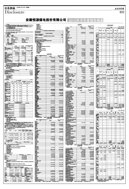 安徽恒源煤电股份有限公司2010年半年度报告摘要