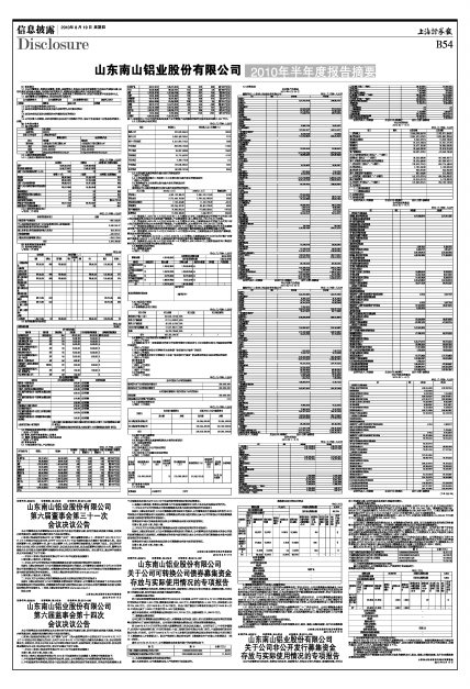 山东南山铝业股份有限公司2010年半年度报告摘要