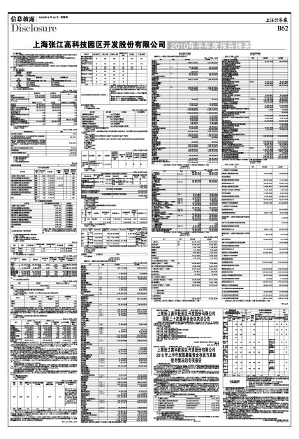 上海张江高科技园区开发股份有限公司2010年半年度报告摘要