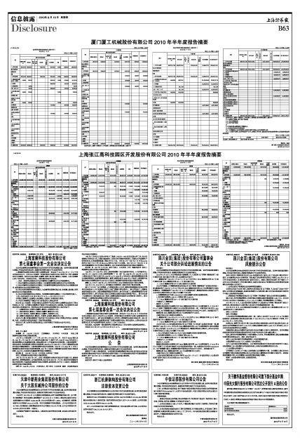 上海张江高科技园区开发股份有限公司2010年半年度报告摘要