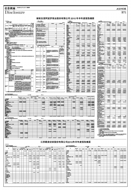 江苏联发纺织股份有限公司2010年半年度报告摘要