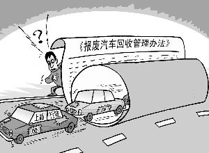 根据中国汽车流通协会的报告,我国每年达到报废年限的车辆早已超过200万辆,可只有50多万辆按照正常程序进入报废回收中心。因为市场管理混乱、缺乏有效指导规范,汽车应废不废,正严重威胁生命安全和环境质量。 漫画 刘道伟