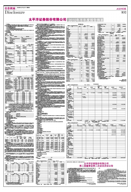 证券代码:601099 证券简称:太平洋 公告编号:临2010-25