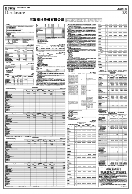 单位名称:三联商社股份有限公司 2010年1-6月 金额单位:人民币元