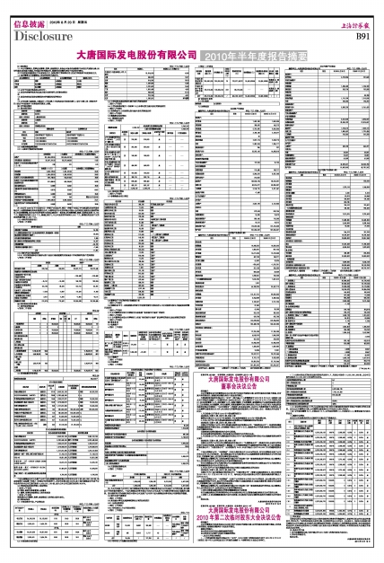 注:本公司2009年下半年发生同一控制下企业合并,将同一控制下企业辽宁大唐国际风电开发有限公司、大唐福建漳州风电有限责任公司、大唐呼伦贝尔化肥有限公司纳入合并范围,根据会计准则的规定,应当追溯调整,视同合并后的报告主体在以前期间一直存在,经追溯调整,调减上期营业利润12,155千元,调减利润总额8,553千元,调减归属于上市公司股东的净利润8,552千元,调增经营活动产生的现金流量净额41,481千元。
