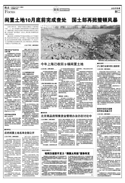 闲置土地10月底前完成查处 国土部再掀整顿风暴