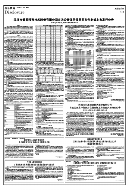 深圳市长盈精密技术股份有限公司首次公开发行股票并在创业板上市发行公告