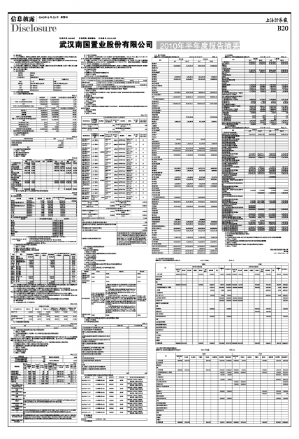 武汉南国置业股份有限公司2010年半年度报告摘要