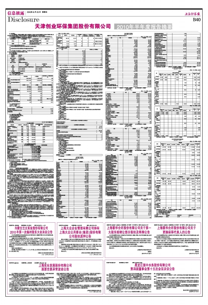 天津创业环保集团股份有限公司2010年半年度报告摘要