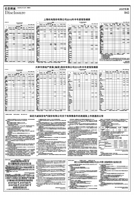 天津市房地产发展(集团)股份有限公司2010年半年度报告摘要