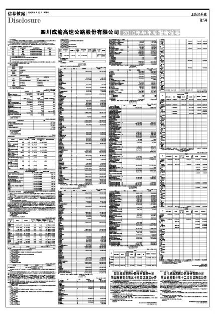 四川成渝高速公路股份有限公司2010年半年度报告摘要