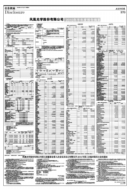 凤凰光学股份有限公司第五届董事会第九次会议决议公告暨召开2010年第三次临时股东大会的通知