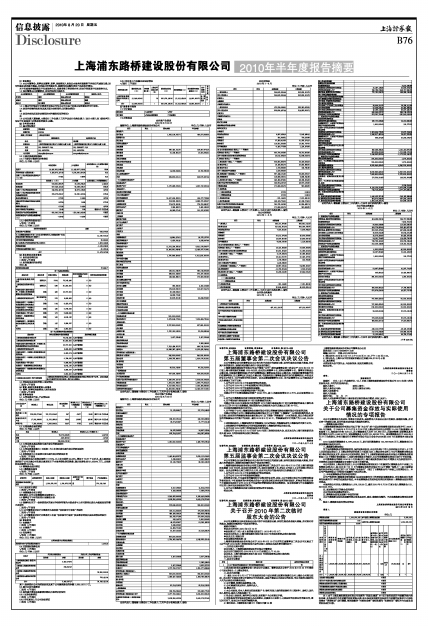 上海浦东路桥建设股份有限公司2010年半年度报告摘要