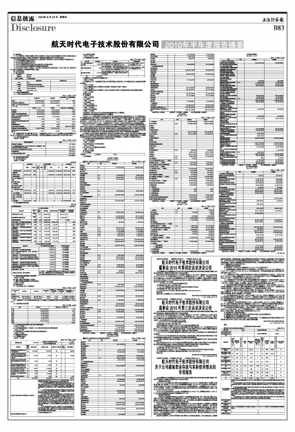 航天时代电子技术股份有限公司2010年半年度报告摘要