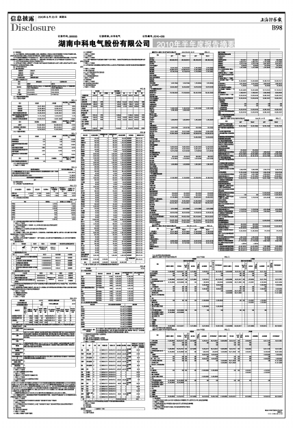 湖南中科电气股份有限公司2010年半年度报告摘要