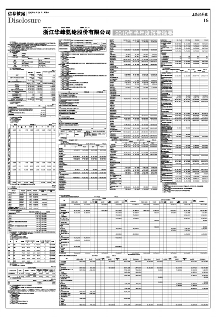 编制单位:浙江华峰氨纶股份有限公司 2010半年度 单位:元