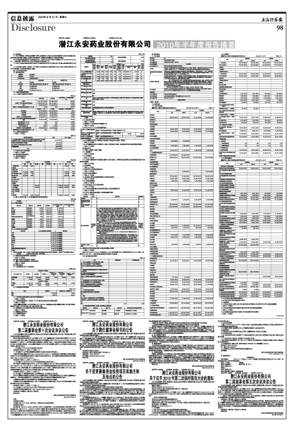 潜江永安药业股份有限公司2010年半年度报告摘要