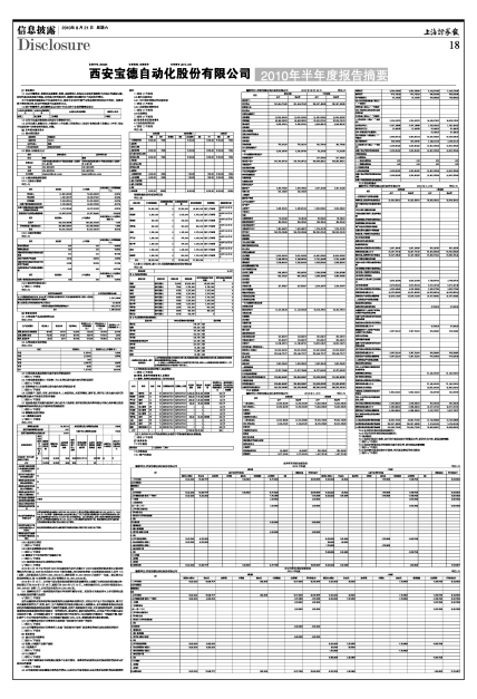 西安宝德自动化股份有限公司2010年半年度报告摘要