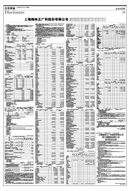 上海梅林正广和股份有限公司2010年半年度报告摘要