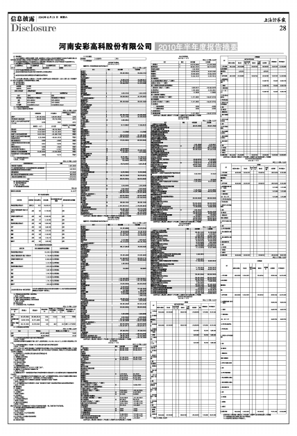 河南安彩高科股份有限公司2010年半年度报告摘要