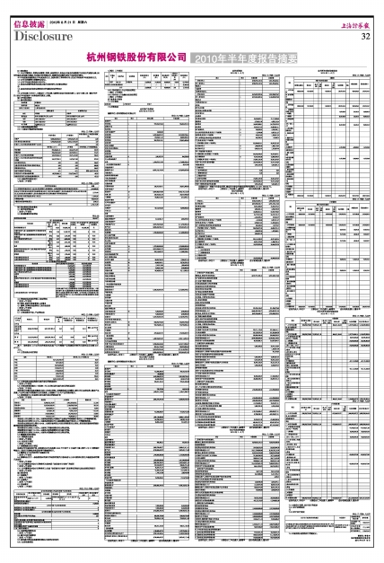 杭州钢铁股份有限公司2010年半年度报告摘要