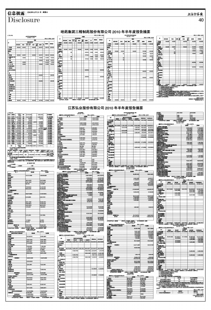 哈药集团三精制药股份有限公司2010年半年度报告摘要
