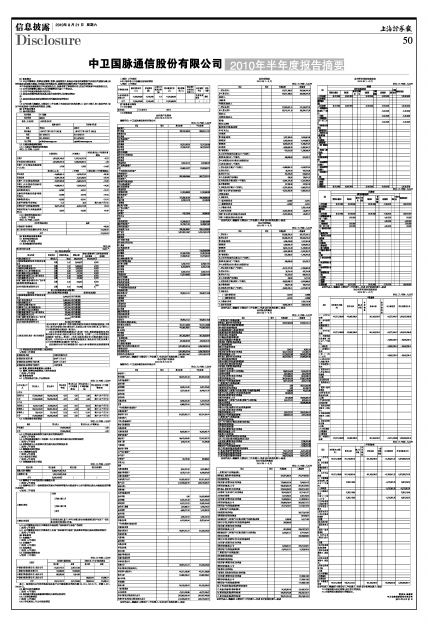 中卫国脉通信股份有限公司2010年半年度报告摘要