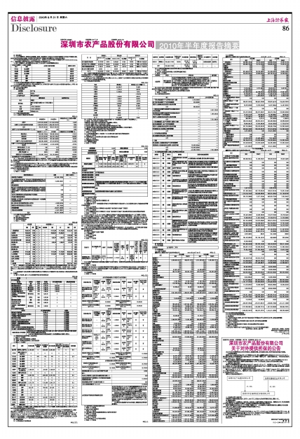 深圳市农产品股份有限公司2010年半年度报告摘要
