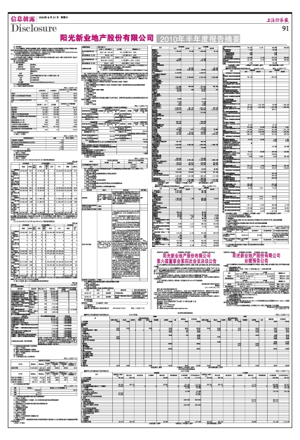 阳光新业地产股份有限公司2010年半年度报告摘要