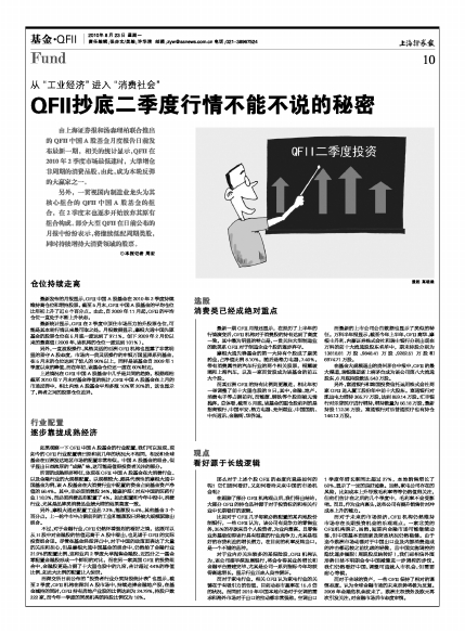 另外,一贯视国内制造业龙头为其核心组合的QFII中国A股基金的组合,在2季度末也逐步开始放弃其原有组合构成。部分大型QFII在日前公布的月报中纷纷表示,将继续低配周期类股,同时持续增持大消费领域的股票。