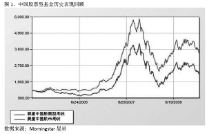 在此我们选取了晨星股票型基金指数作为主动型基金的代表,基准指数选取晨星中国股市指数。从长期来看,股票型基金大幅的战胜了市场,主动型投资在中国仍然具有吸引力。如果投资者在2003年6月1日买入1万元的股票基金,那么到2010年6月30日平均可以上涨到3.85万元,即使考虑同期的通胀收益率也相当的可观。同期的晨星中国股市指数上涨了202%。