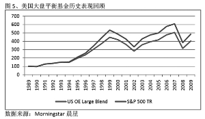 我们选择了大盘平衡型基金和多样化新兴市场基金作为主动型基金的代表,这两类型分别主要投资于美国市场和多样化新兴市场,可以用来考虑分别在成熟市场和新兴市场的投资情况。如果投资者在1990年初买入1万元的大盘平衡基金,到2009年末将4万元左右,涨幅400%,但是同期的标普500指数上涨超过480%,主动型投资并未战胜市场。从单个年份来看,大盘平衡基金落后标普500指数也是非常的普遍。自1990年到2009年的20个年份中,大盘平衡型基金战胜标普500指数的年份只有6个,战胜率为30%;在14个市场上涨的年份中大盘平衡基金战胜标普500的年份有5个,战胜率为35.7%;而在6个市场下跌的年份中大盘平衡基金战胜标普500的年份只有有1个,战胜率为16.7%。相对中国股票型基金而言,美国大盘平衡基金在下跌中战胜市场的机会更低,这可能是后者长期未能创造超额收益的重要原因。 19, 23%33, 39%31, 37%1, 1%上涨时战胜市场上涨时落后市场下跌时战胜市场下跌时落后市场。