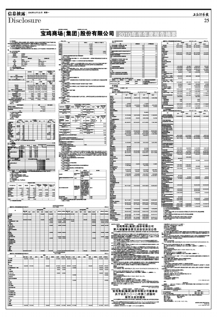 宝鸡商场(集团)股份有限公司2010年半年度报告摘要