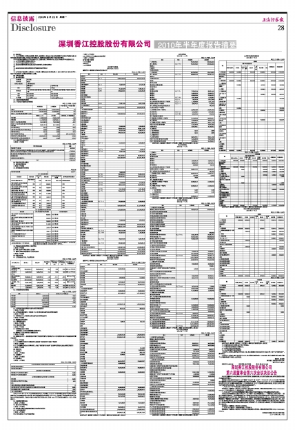 深圳香江控股股份有限公司2010年半年度报告摘要