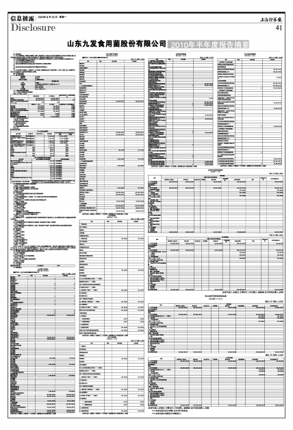山东九发食用菌股份有限公司2010年半年度报告摘要