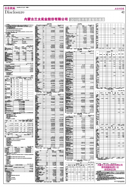 内蒙古兰太实业股份有限公司2010年半年度报告摘要