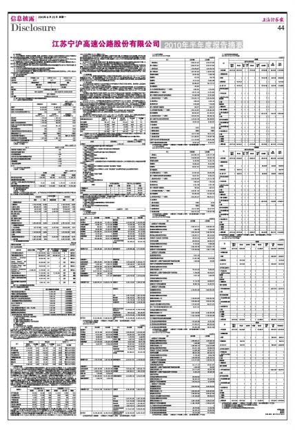 江苏宁沪高速公路股份有限公司2010年半年度报告摘要