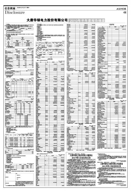 大唐华银电力股份有限公司2010年半年度报告摘要