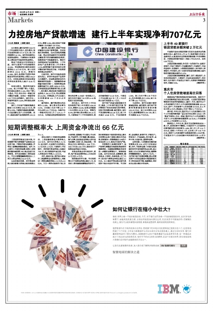 力控房地产贷款增速 建行上半年实现净利707亿元