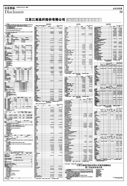 江苏江南高纤股份有限公司2010年半年度报告摘要