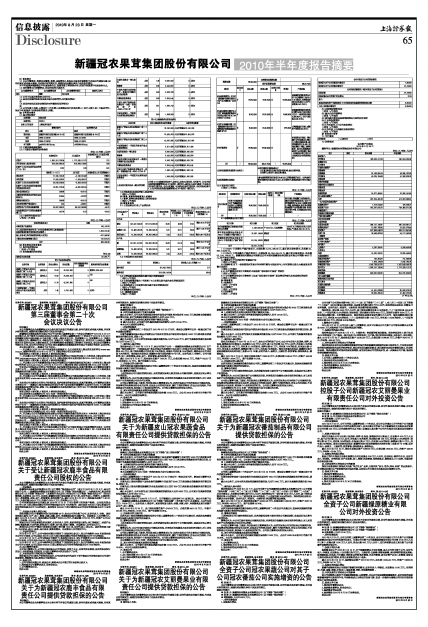 新疆冠农果茸集团股份有限公司2010年半年度报告摘要