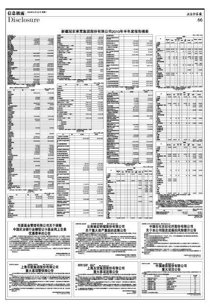 新疆冠农果茸集团股份有限公司2010年半年度报告摘要
