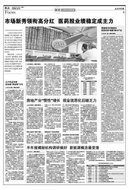 市场新秀领衔高分红 医药股业绩稳定成主力