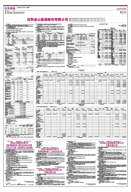沈阳金山能源股份有限公司于2010年8月13日以邮件、传真及送达方式向全体董事发出了召开公司第四届董事会第十四次会议的书面通知,并于2010年8月23日以通讯方式召开公司第四届董事会第十四次会议。应出席会议董事9人,实际参加表决董事9人。会议的召开符合《公司法》及《公司章程》的有关规定,会议审议并通过了如下决议: