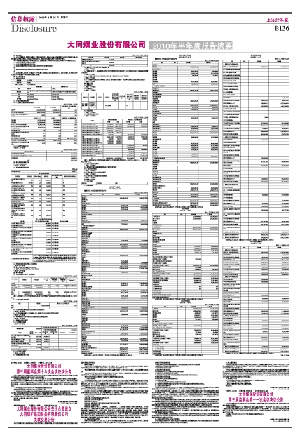 证券代码:601001 证券简称:大同煤业 公告编号:2010-020