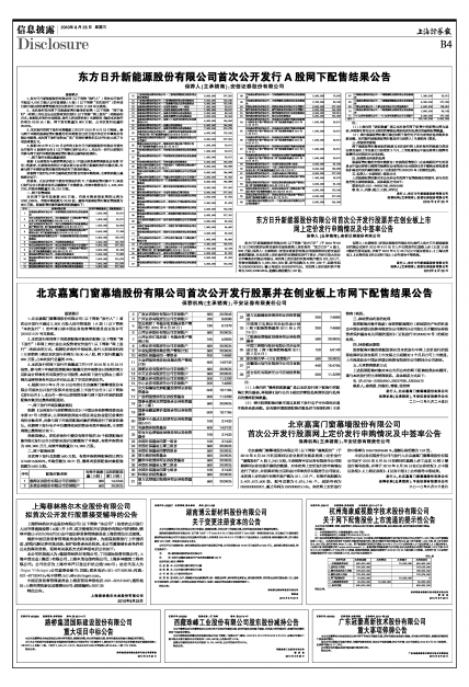 东方日升新能源股份有限公司首次公开发行A股网下配售结果公告
